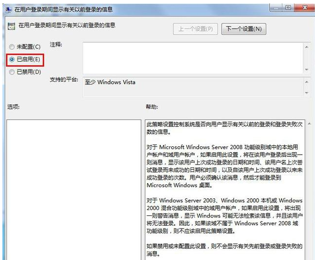 3、选择\"已启用\",点击确定即可。