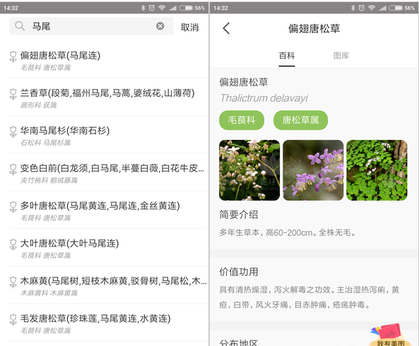 花伴侣在识花方面的确可以称得上是神器,想丰富自己的植物花卉知识,看到不了解的花就拍照看看。
