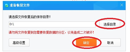 注意:请不要将文件恢复到有数据需要恢复的分区里,以免造成二次破坏。