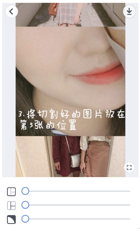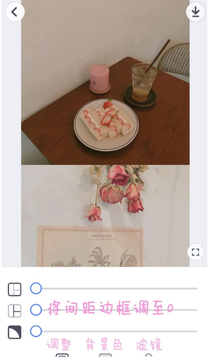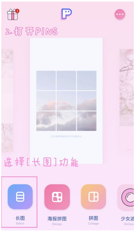 3、按照顺序,将切好的9张图片分别放入拼接的长图中,在PINS里还可以一键滤镜,炒鸡方便!