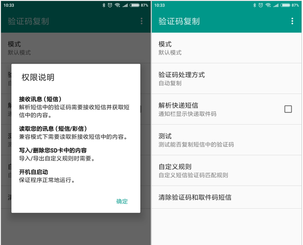 这款工具的名字就叫做“验证码复制器”,非常的简单直接。它来自于个人开发者,而且还是开源的,权限请求也非常克制,可以说是完全不流氓了。而APP开启后,对于所申请的权限还会一一作出详细说明,看了后的确可以更加放心。