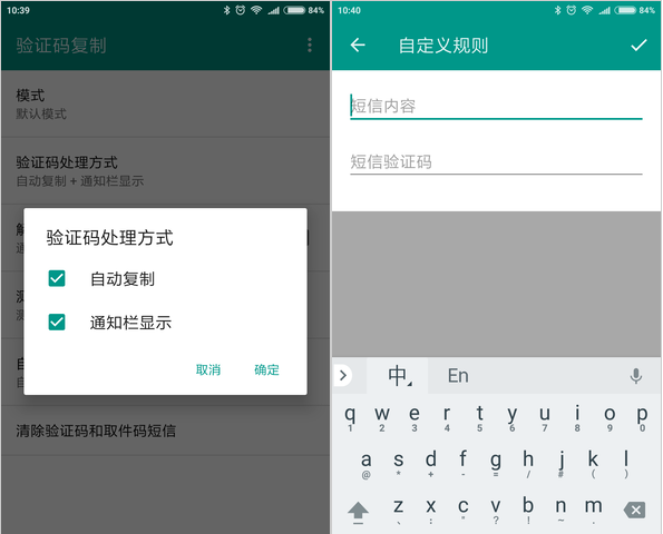 验证码开源自动复制,也可以一直在通知栏显示,支持自定义规则