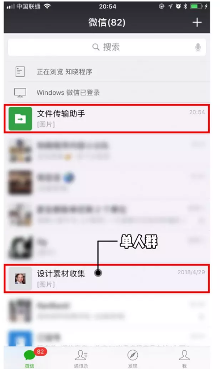 当然,除了置顶「文件传输助手」,小编也会置顶功能性单人群。
