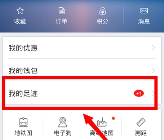 接着在新的界面上,中间一栏的第三行里,点击“我的足迹”按钮;