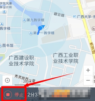 接着我们一边携带着自己的手机,一边从一个起点的位置开始走动,直到走到自己的目的地为止,点击“停止”的按钮;