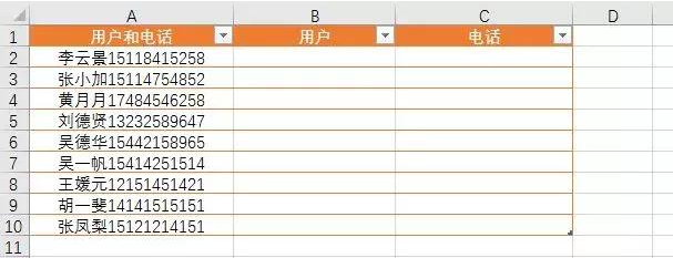 我们先写好第一行,让Excel能够识别拆分的样式:15118415258张小花