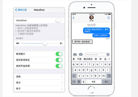 通过轻触手机屏幕,iPhone会自动朗读屏幕上面的项目,通过不同的手势操作来操纵手机。