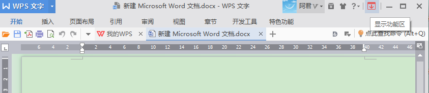 第五步,如果想要显示菜单栏,可以点击之前的红色按钮,它的意思现在是显示功能区。如下图所示
