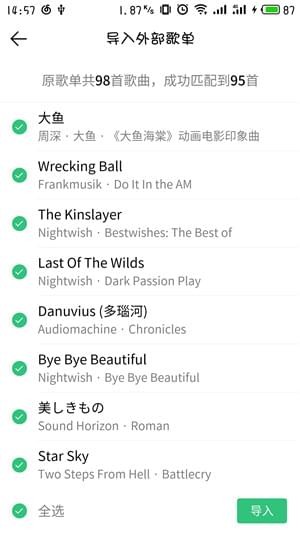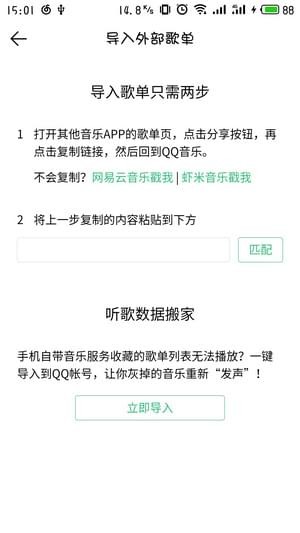 点击导入外部歌单,将刚刚复制的链接粘贴到中间,点击匹配