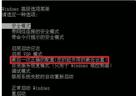 2、可以让电脑不停重启的软件问题,可能是电脑感染了病毒,也可能是系统文件损坏了,对于软件问题我们可以在开机时按下F8键,打开高级选项菜单,选择“最后一次正确的配置”即可;