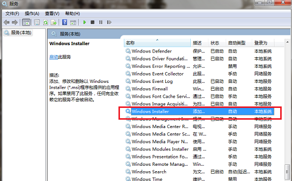 进去系统服务界面之后,找到Windows Installer服务,双击进去,如下图所示,