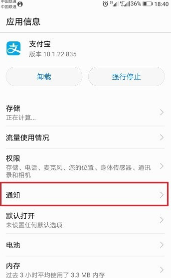 进去应用管理之后,找到该应用点击进去,然后点击通知,如下图所示: