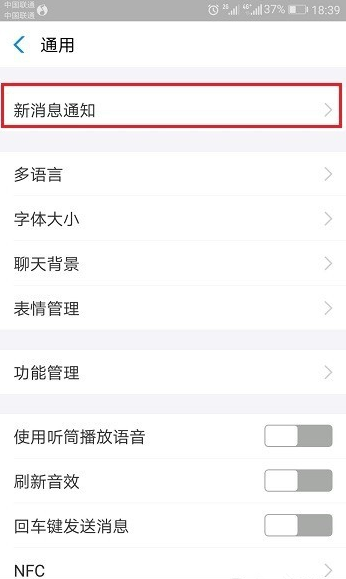 进去设置界面,点击通用,然后选择新消息通知,如下图所示: