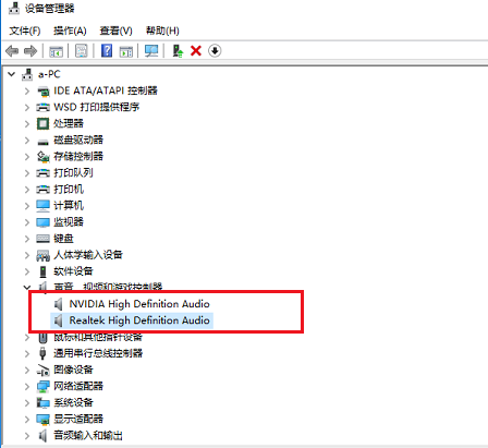 打开设备管理器之后,点击声音、视频和游戏控制器,可以看到里面的驱动,如下图所示: