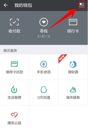进入钱包页面后,点击右上角的图标(如图所示)。