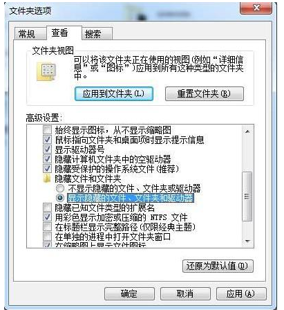 方法一:打开文件夹选项,把隐藏项打上钩,