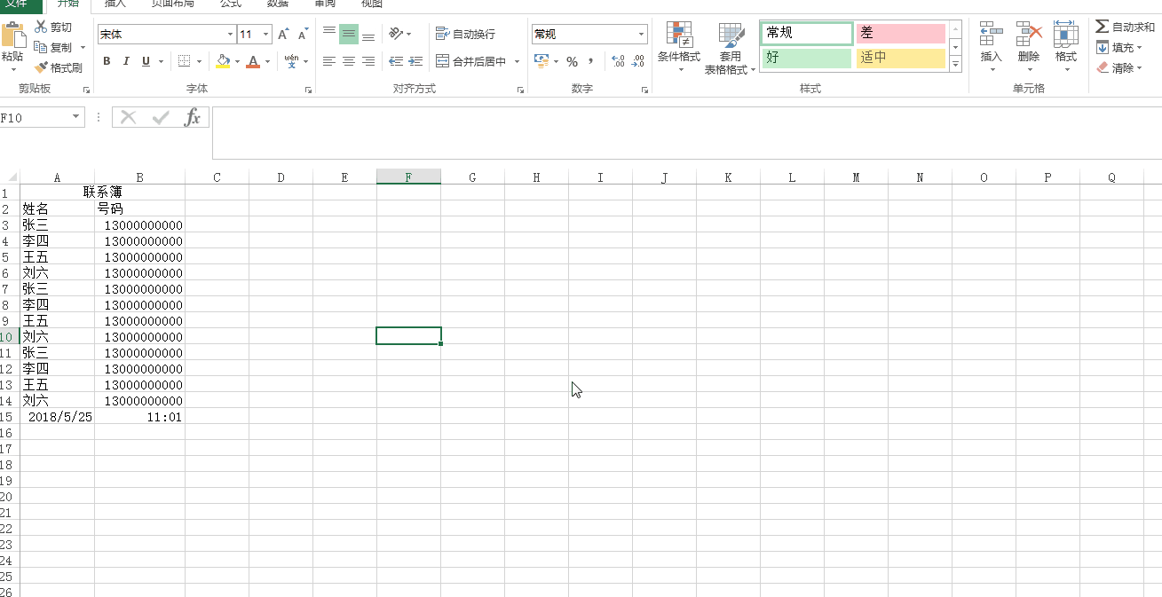 2、输入系统日期与时间Ctrl+;(分号)和Ctrl+Shift+;(分号)