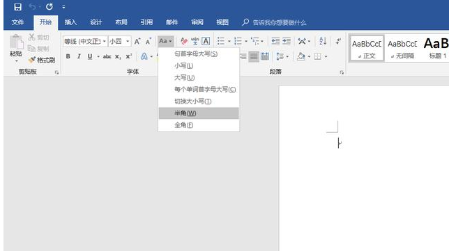 解决方法:【开始】--【字体】--【更改大小写】--【半角】