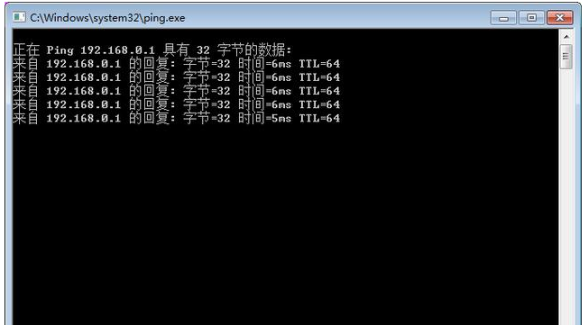 测试局域网是否稳定可以直接输入ping 192.168.0.1 -t