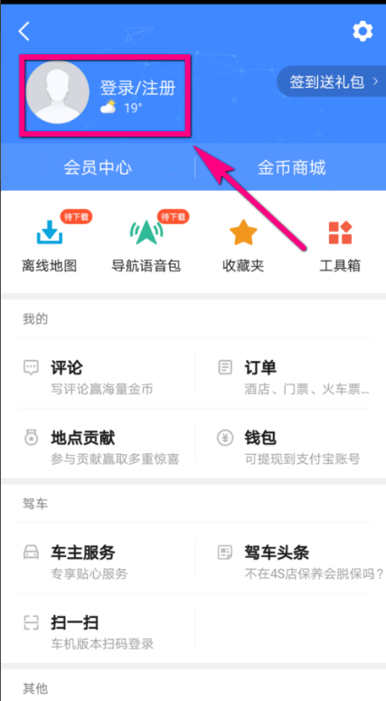 登录账号以后,在地图首页右侧图示的位置点击轿车图标。