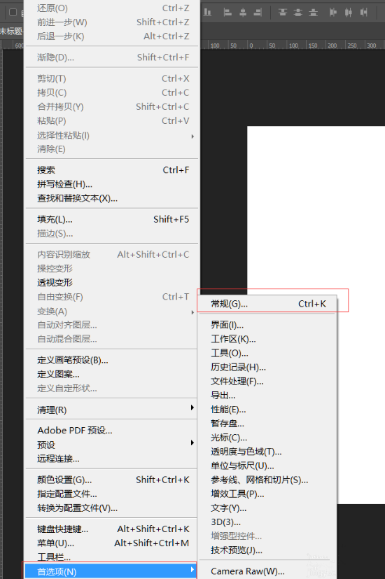 点击【编辑】-首选项-常规,也可以按快捷键【Ctrl+K】,