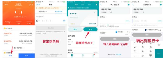 方法:余额宝——转出到余额——打开网商银行APP——从余额转入网商银行活期——从活期转出到银行卡。