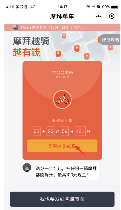 摩拜发红包赚赏金怎么玩?