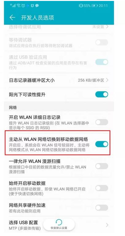 开启这个功能后,系统将在WLAN信号较弱时,主动将网络模式从WLAN网络切换到移动数据网络,跟WLAN+部分功能类似。