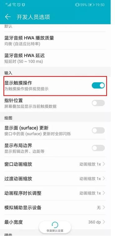 如果你觉得触屏没有视觉展示,不够直观的话,那你可以选择开启“显示触屏操作”。当开启后,触屏操作时会显示一个小圆点,视觉上更清晰。