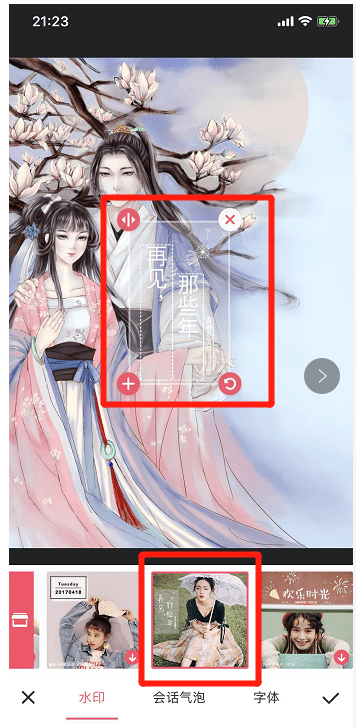 调整文字水印位置到合适的地方,调整完毕后,点击右下角勾勾按钮;