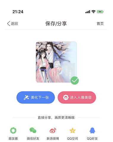 点击当前图片编辑界面右上角【保存】按钮,即可将编辑好的封面图保存到手机相册中了。
