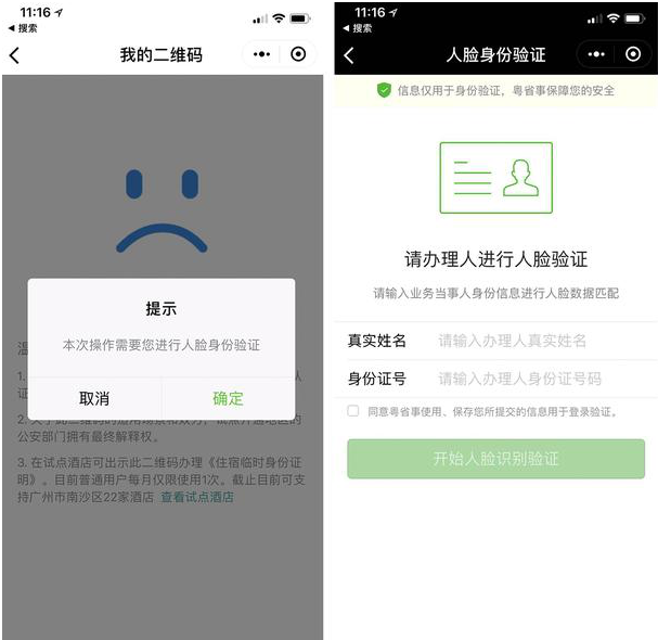进入粤省事小程序界面,进入实名认证,根据提示进行,初步的数据会读取公安部分数据系统,然后可继续丰富自己的其余个人辅助信息,方便后续的民生服务办理。还可以补充你自己的个人二维码,根据提示得知此二维码是公安部第一研究所提供,可适用于在指定的酒店出示办理《住宿临时身份证》,也就是说如果你去酒店入住忘记带身份证了,可以以此办理住宿临时身份证,不过马去爱你可支持的只有广州市南沙区22家酒店。