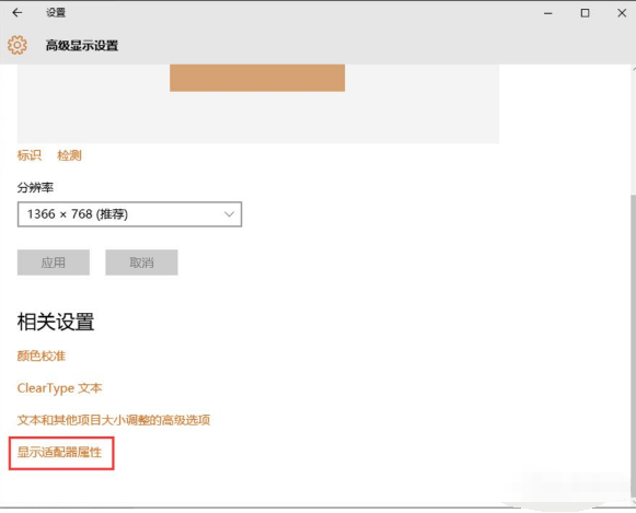 4、点击【高级显示设置】功能选项,进入高级显示设置界面,下拉该界面,找到【显示适配器属性】功能选项;