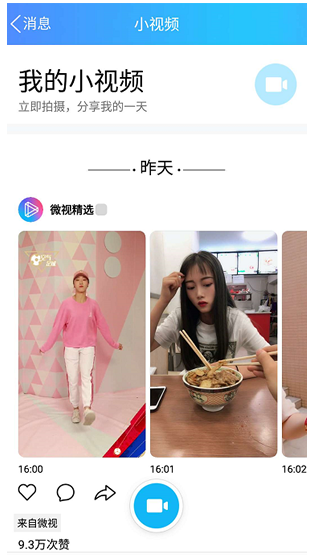 手机QQ好友小视频功能上线了,赶快来体验吧。