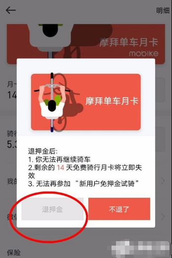 摩拜单车退押金的操作步骤: