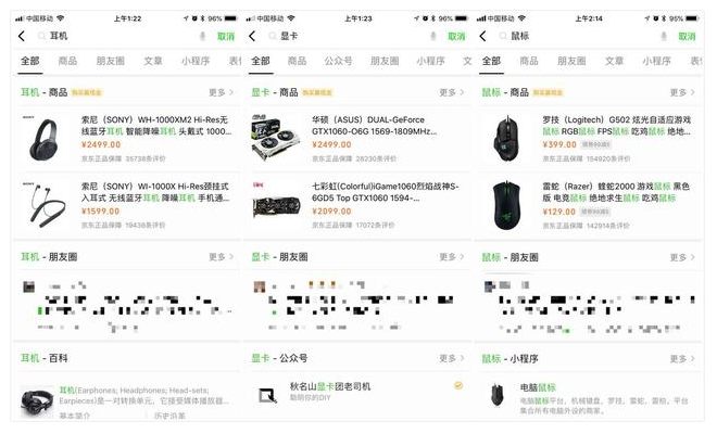 例如,在微信“搜一搜”里搜索“1080ti”,搜索结果并不会出现任何商品类目或栏目,仍然只呈现文章、公众号、网页等搜索结果。