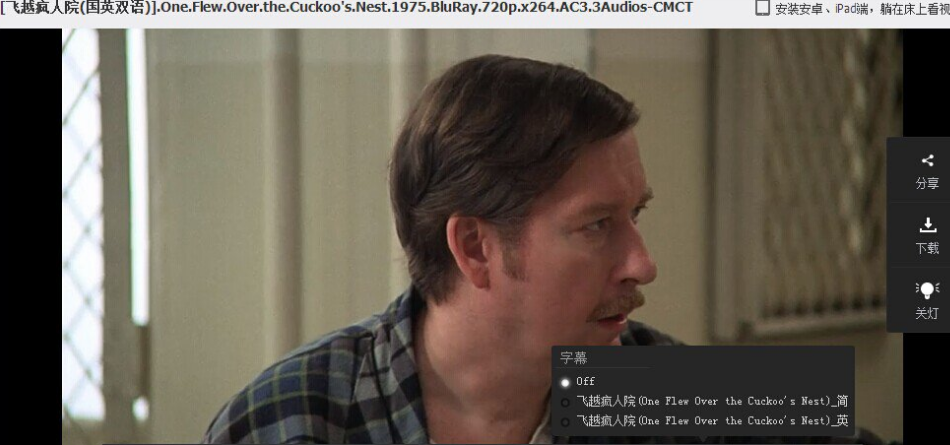 1、打开一个视频,点击下方“字幕”按钮,列表显示系统匹配的字幕文件(如果未找到对应字幕不会出现“字幕”按钮);