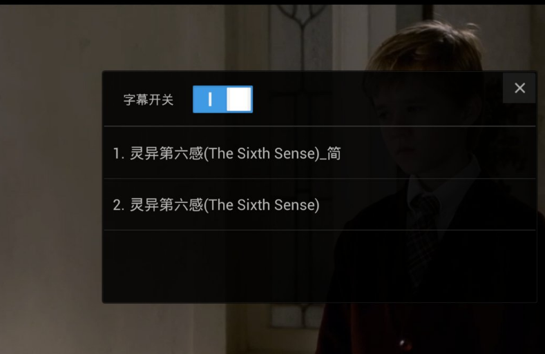 3、字幕加载完毕后,关闭列表,继续欣赏电影吧。