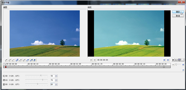 五、单击“确定”按钮,返回会声会影编辑器,即可自定义视频滤镜效果。单击导览面板中的“播放”按钮,即可预览自定义的滤镜效果。