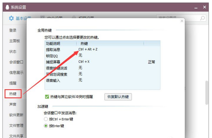 QQ更改方法是:在系统设置里面更改提前消息快捷键。
