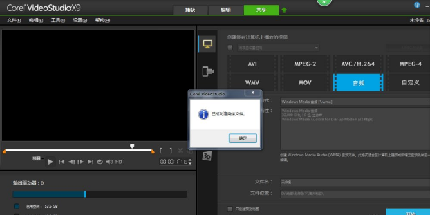 6、效果不错,点击共享,音频,命文件名和选择文件位置。点击开始,渲染完成就OK啦。