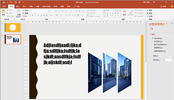 搭建完双头显示之后,就可以开启幻灯片制作了,小编这里选用的是微软PowerPoint 2019测试版,当然有条件的童鞋也可以试一试Keynote。