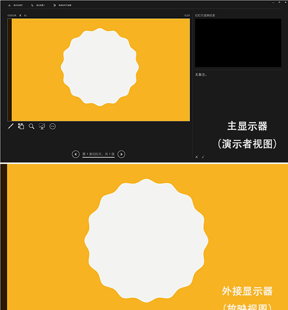 接下来,按下F5键开启播放。PowerPoint会自动识别显示设备,一般来说主显示器会呈现演示者视图,外接设备则自动进入播放模式。