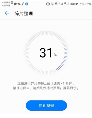小编这是第一次使用华为手机的碎片整理功能,询问一些网友,他们中有人曾经用过这一功能,但是在系统里主动去找这个功能是找不到的,应该是一种被动触发式的功能。
