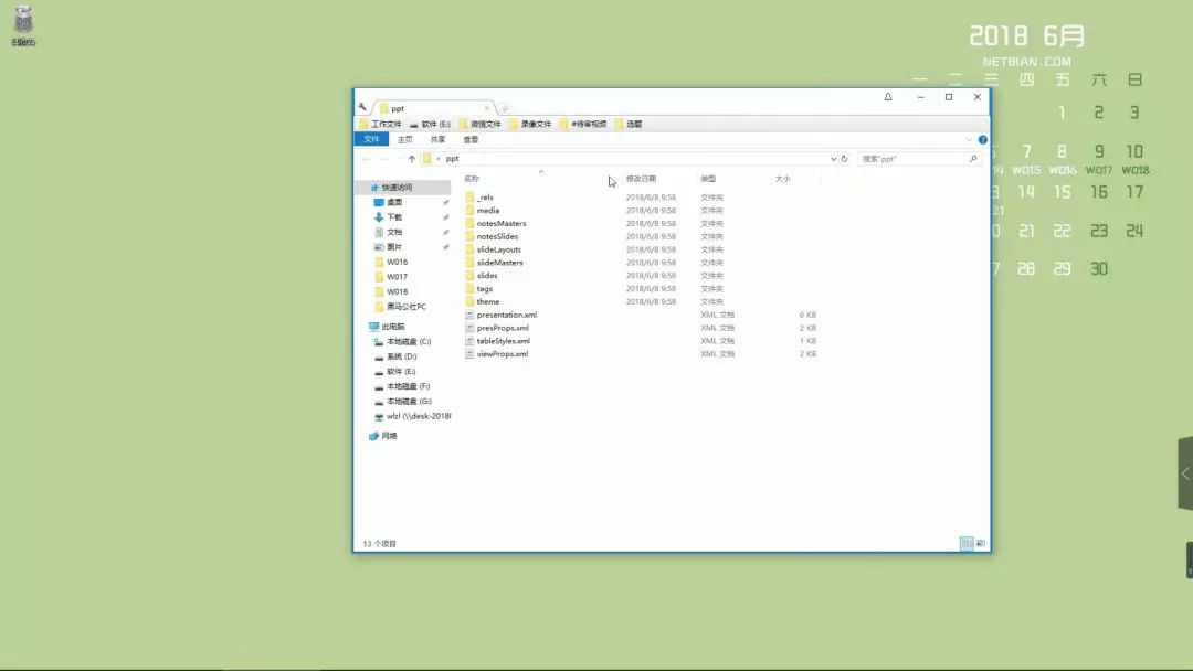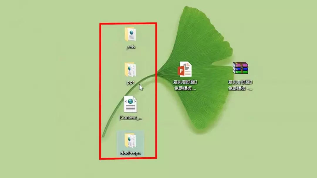 首先我们要先将PPT复制一个副本。然后将副本的后缀改成.rar,压缩文件格式。再将这个压缩文件给解压缩到桌面上。