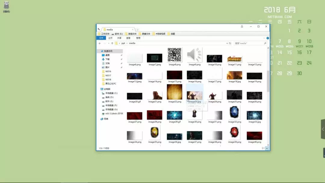 打开文件夹就能看到 PPT 里所有的图片都在这里,怎么样,是不是非常非常的简单?!总共花费不到 10 秒的时间,可以说是光速了。