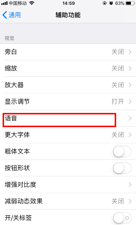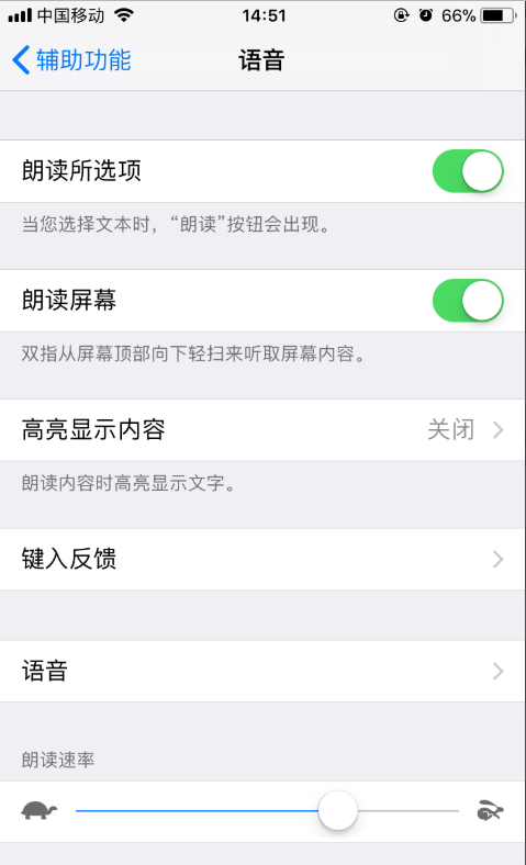 然后再进入语音,打开两个功能:朗读屏幕、朗读所选项即可。