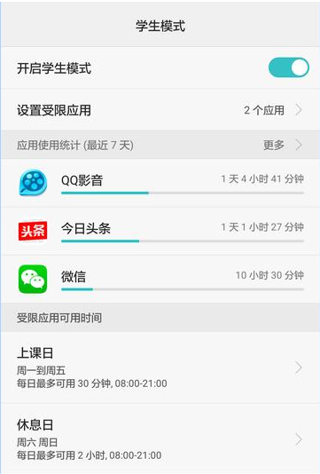 现在孩子从很小就开始玩电子产品了,手机、平板、电脑样样精通,甚至沉迷于这些电子产品。网上信息太复杂,大部分都不适合孩子。如何让孩子科学合理的使用手机是很多家长忧愁的,华为手机的学生模式了解下。