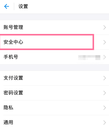 此时会弹出设置页面,在设置页面里,我们点击选择【安全中心】,