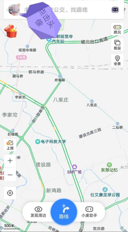 打开百度地图APP,进入页面,点击头像位置,
